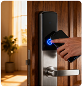 Suministro e instalación de cerraduras digitales con acceso por huella, código, tarjeta o smartphone. Moderniza la seguridad de tu hogar o negocio.